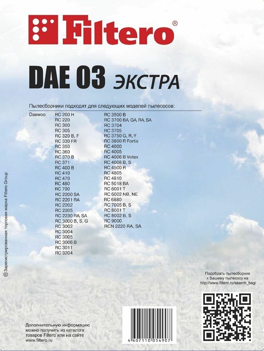 Пылесборники FILTERO DAE 03 Экстра пятислойные 4 шт. для пылесосов DAEWOO DAE 03 (4) ЭКСТРА