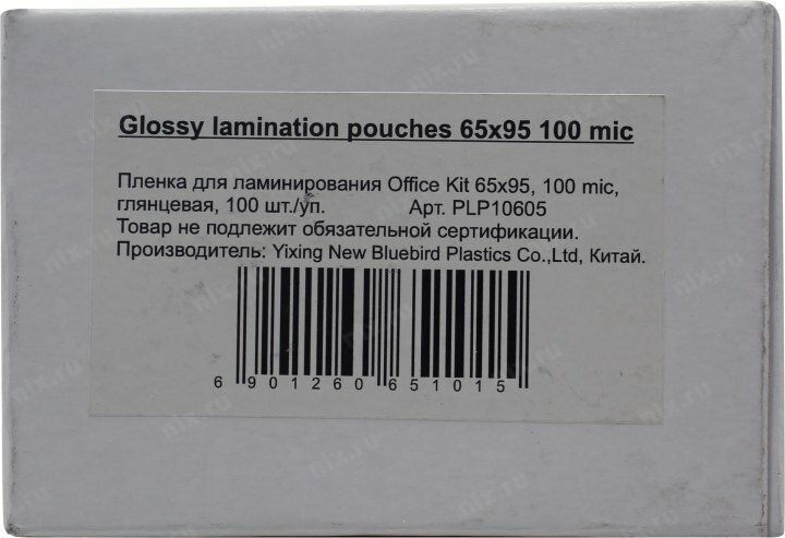 Сервис сравнения цен СкидкаГИД предлагает сравнить цены на товар «Пленка для ламинирования OFFICE KIT 100мкм 65х95 мм 100шт. глянцевая PLP10605»