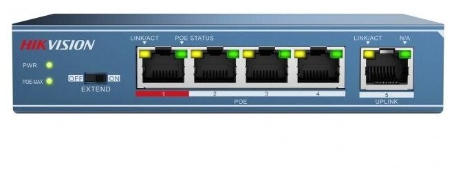 Коммутатор Hikvision 5xRJ45 4xPOE DS-3E0105P-E