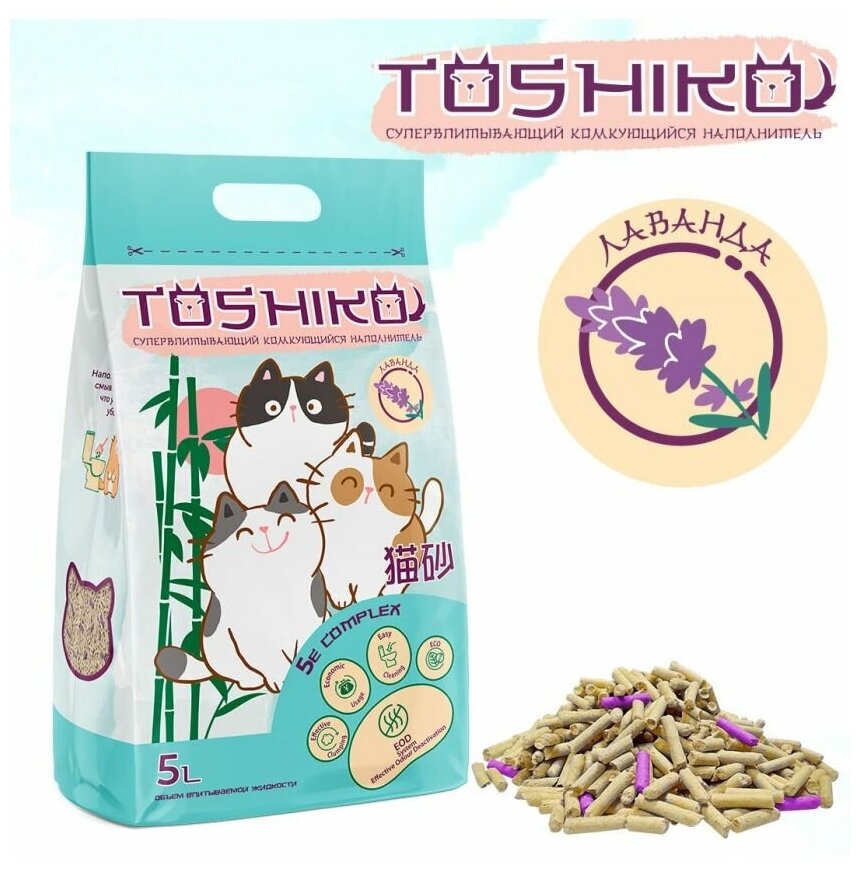 Наполнитель Toshiko Лаванда комкующийся древесный 76кг 20 л