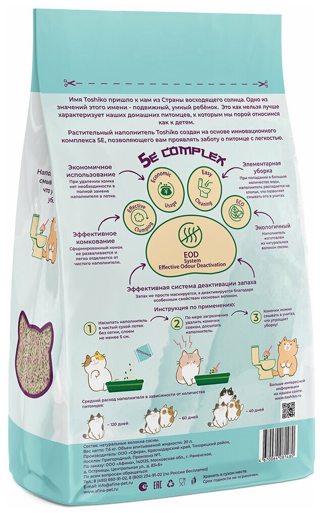 Имя Toshiko пришло к нам из страны восходящего солнца. Одно из значений этого имени – подвижный, умный ребёнок. Это как нельзя лучше характеризует наших домашних питомцев, к которым мы порой относимся как к детям. Растительный наполнитель Toshiko создан на основе инновационного комплекса 5E, позволяющего вам проявлять заботу о питомце с легкостью. При попадании жидкости он образовывает плотный комок, который можно утилизировать в канализацию - ведь при попадании в большое количество воды, комок распадется на хлопья и не приведет к засору. Toshiko Сакура обладает ненавязчивым ароматом японской вишни, а неприятные запахи не просто маскирует, а деактивирует.
