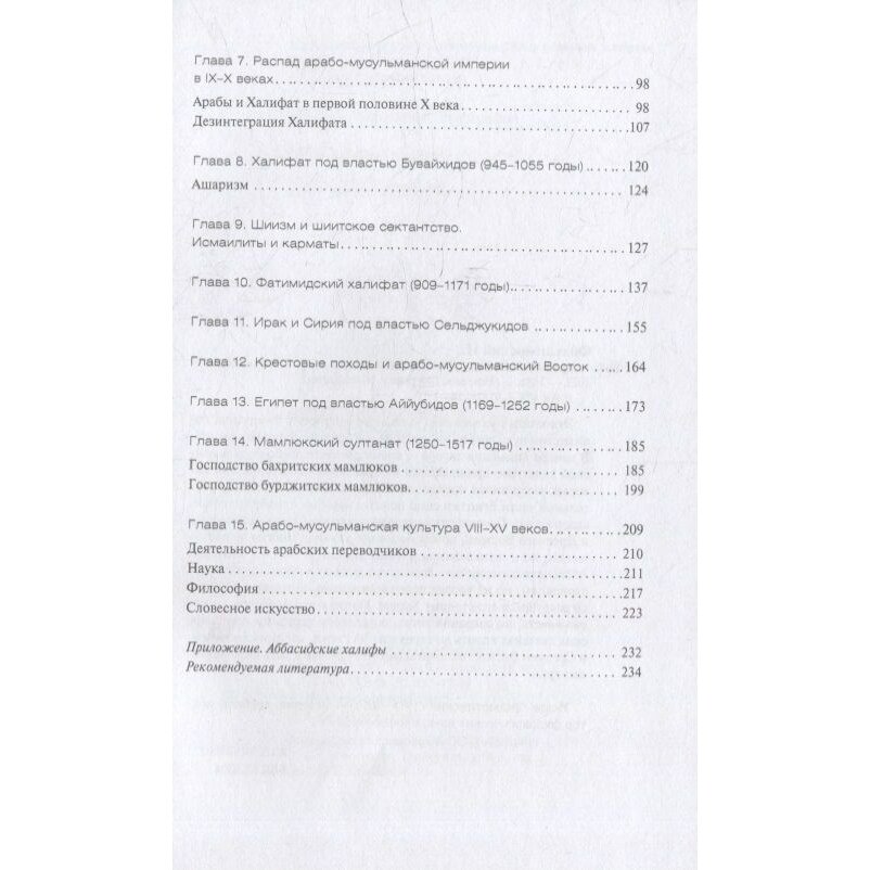 Эта книга рассказывает о полном непростых поворотов, извилистом пути арабов на протяжении без малого восьмисот лет. В центре внимания автора - время расцвета арабо-мусульманской культуры, пришедшееся на правление Аббасидов, при которых завершился процесс арабизации Сирии, Ирака, значительной части Египта и само понятие "арабы" приобрело новое содержание. Переработав наследие народов Средиземноморья и Древнего Востока, арабы не только усвоили многие их достижения, но и познакомили с ними Западную Европу. Халифат Аббасидов соперничал с Византией, успешно противостоял крестоносцам, но не устоял перед монголами, которые в 1258 году разрушили его столицу Багдад. После этого Аббасиды, потеряв власть, но сохранив титул, оставались халифами при каирских султанах вплоть до середины XVI века, когда на Ближнем и Среднем Востоке окончательно утвердилась власть Османской империи.