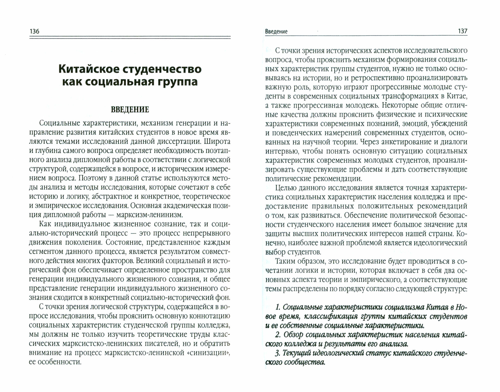После распада СССР в 1991 году граждане России столкнулись со многими проблемами. Распад социалистической экономической базы и отсутствие адекватно организованного рабочего класса придали ряд существенных особенностей стратегии и тактике борьбы нынешнего левого движения в России. Современная Россия после распада СССР оказалась на совершенно ином этапе, чем царская Россия накануне революции более ста лет назад. Однако одна великая страна отстояла свой социалистический строй и провела социальные реформы на волне конца 1980-х – начала 1990-х годов. Эта страна — социалистическая Китайская Народная Республика. Эта книга была написана в честь столетия основания Союза Советских Социалистических Республик, первого социалистического государства в мире. Она написана при помощи и поддержке ЦК КПРФ и ЦК ЛКСМ РФ и ЦС РУСО и социологического факультета МГУ имени М.В.Ломоносова и МГК ЛКСМ РФ. Автор книги считает главным значением своего труда изложение результатов современных исследований по наиболее освещаемым вопросам Китая. В книге собраны тематические исследования, посвященные политической элите Китая и китайскому университетскому студенческому коллективу. Также включены работы, в которых на основе марксистско-ленинских позиций рассматриваются социальные, политические и экономические явления, реально существующие в нынешнем социалистическом Китае.