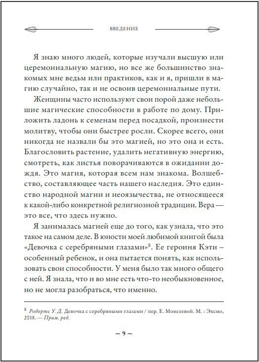 Книга очень интересная, при чтении больше похожа на беседу с подругой. Как будто вы сидите и болтаете о магии, о всяких чудеса и суевериях. Книга читается легко, в ней можно найти и полезные и так же бестовковые вещи. Каждый раздел книги описывает саму суть и очень кратко и этого достаточно. Сама книга приятная, её хочется держать в руках, листать страницы, останавливаться и читать отрывки и от этого суть и смысл не потеряется. Мне понравилось.