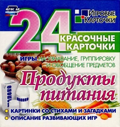 На сегодняшний день товар «Книга: Продукты питания. 24 красочные карточки. Игры на узнавание группировку и обобщение предметов. Картинки со стихами и загадками. Описание развивающих и (без автора); Учитель, 2020» можно купить с кешбеком в 3 магазинах: book24, Буквоед, Читай-город