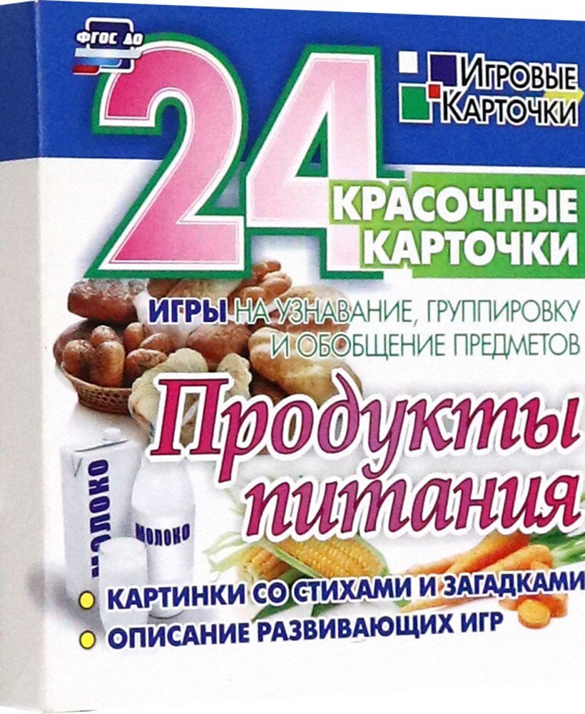 Продукты питания. 24 красочные карточки. Игры на узнавание группировку и обобщение предметов. Картинки со стихами и загадками. Описание развивающих и (без автора); Учитель, 2020