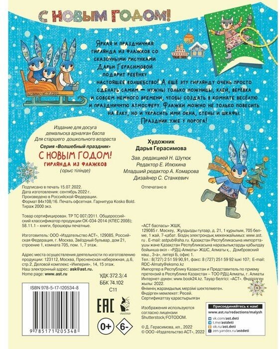 Нужно аккуратно вырезать по прочерченным линиям и склеить флажки, развесить их на веревочке. Получится гирлянда с надписью "С новым годом!". Яркие, красивые картинки. нарисованные Дарьей Герасимовой, плотная бумага, отличное качество печати. Замечательный вариант для времяпрепровождения с детьми и украшения комнаты к новогодним праздникам. Покупкой довольна!