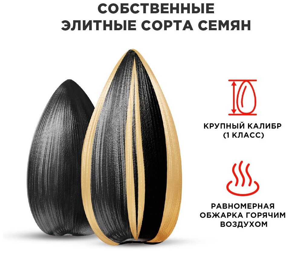 Еще больше вкуса и аромата по-настоящему жареных семечек в пачке "Солнечный Великан" ТМ "Джинн". Это особые полосатые семечки отличаются не только по размеру, они несколько крупнее традиционных «черных» семян, а их вкус больше похож на вкус орехов. Кроме того, семечки рекордсмены по содержанию витамина Е, который также называют витамином молодости, и витаминов группы В, которые важны для поддержания здоровья клеток, в том числе клеток, которые используются в строении волос, ногтей, кожи. Экологически чистые и качественно обжаренные полосатые семечки "Солнечный Великан" ТМ "Джинн" – лучшая альтернатива сладким питательным батончикам и другим видам быстрого перекуса.