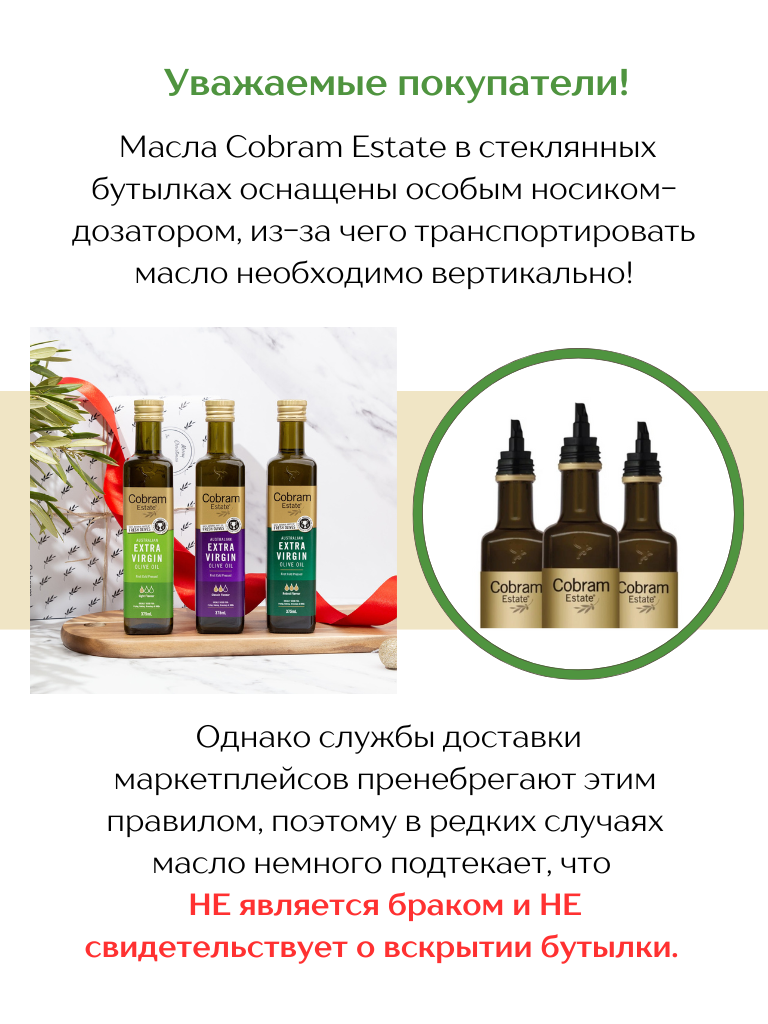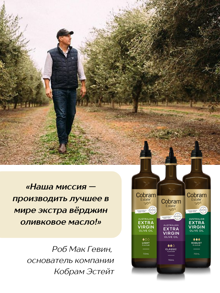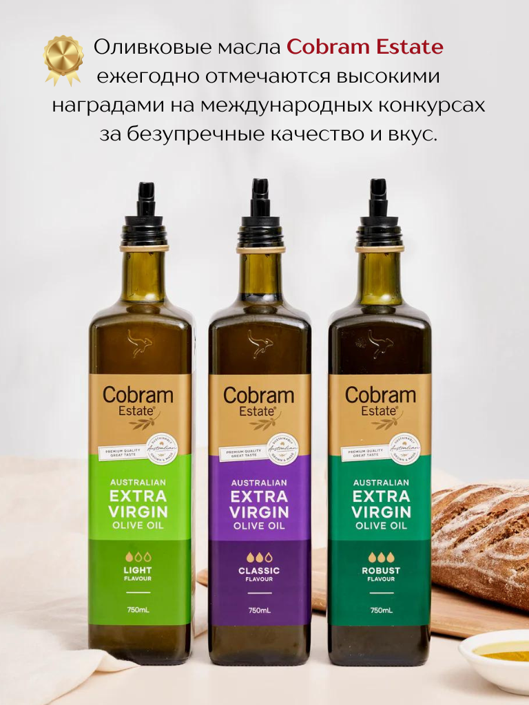 Оливковое масло Cobram Estate Extra Virgin Light.Масло премиального качества, нерафинированное, первого холодного отжима.Изготовлено в Австралии крупнейшим производителем оливковых масел премиум-класса. Компания Cobram Estate занимается всем циклом производства - от посадки оливковых деревьев и сбора урожая до отжима и розлива, чтобы гарантировать высшее качество продукта.Оливковое масло Cobram Estate Extra Virgin изготавливается из оливок, выращенных на берегу реки Мюррей, на экологически чистой территории, где средиземноморский климат и плодородные красные австралийские почвы обеспечивают наилучшие условия для созревания оливок.Легкий и деликатный аромат масла Cobram Estate Extra Virgin Light сочетает в себе оливки сорта Арбекина (Arbequina). Этот сорт происходит из Ближнего Востока и придает маслу сливочный аромат с гладким, нежным вкусом и деликатным послевкусием. Дегустационные заметки: Cobram Light Flavour - тонкая смесь с красивыми спелыми фруктами и яблочными нотами с отчетливой сладостью во вкусе. Идеальный выбор, когда хочется, чтобы масло помогало еде рассказывать свою историю! Идеально подходит для приготовления рыбы или омлетов, домашнего майонеза или легкой обжарки.