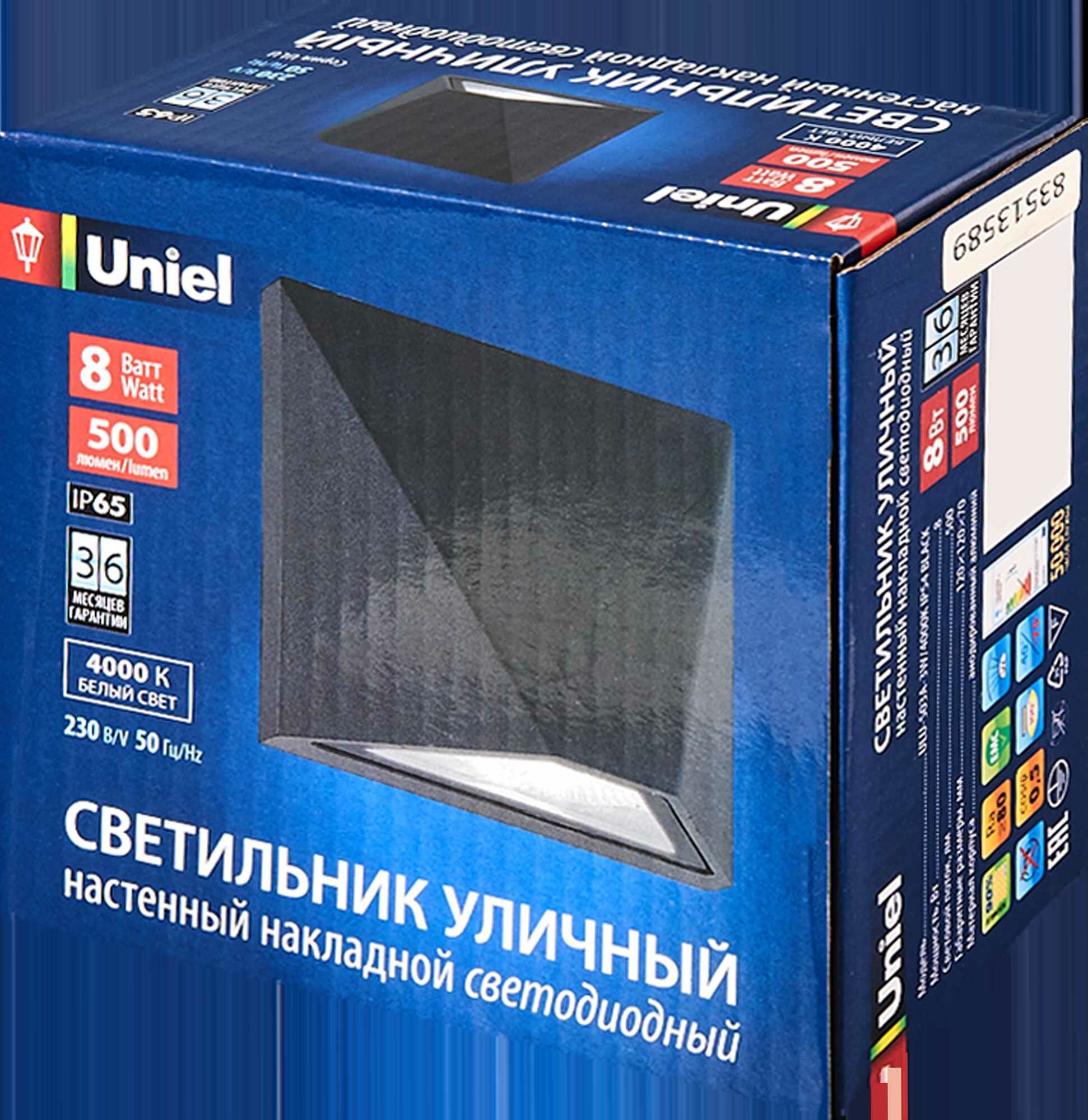 Уличный настенный светодиодный светильник Uniel UL-00009347 ULU-S50A-8W/4000K IP65 Black ULU-S5
