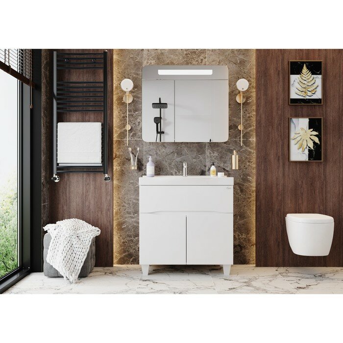 Зеркальный шкаф Onika Неаполь 80.01 208094 с подсветкой Белый
