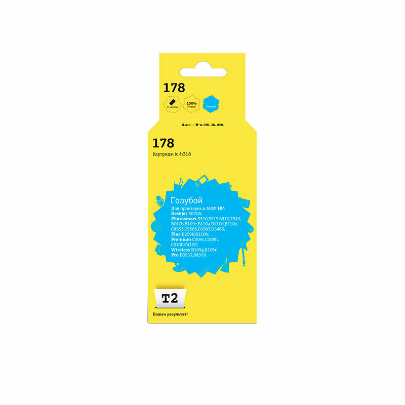 Картридж T2 №178 (аналог CB318HE) для HP Deskjet 3070A/Photosmart 5510/6510/7510/B110/C8583, голубой, с чипом