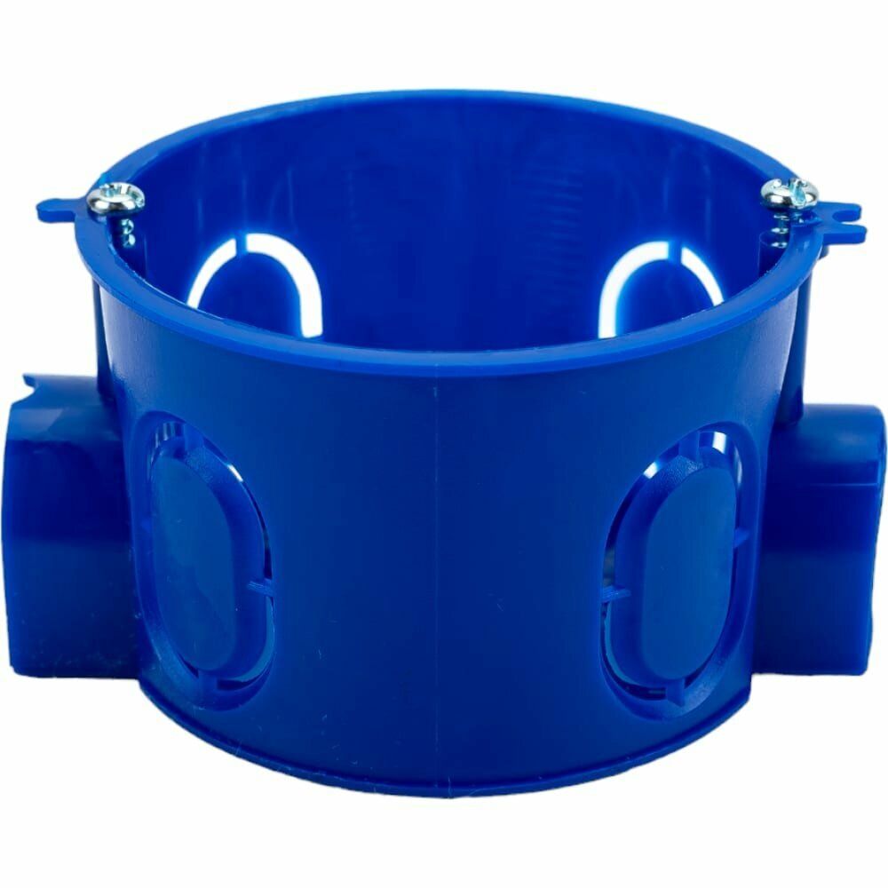 Подрозетник BYLECTRICA 68х80х43 мм ( исп. 1) комплектуется саморезами, предназначен для монтажа в сплошные стены и потолки из несгораемых материалов после монтажа здания с помощью песчано-цементной смеси и установки выключателей и (или) розеток для скрытой установки при использовании внутри помещений (соответствующих требованиям европейских стандартов). Установочная коробка для розетки используется при скрытой проводке для организации коммутации силовых, телефонных и телевизионных кабелей. Благодаря прочному пластиковому корпусу и хорошим диэлектрическим свойствам, подрозетник для бетона гарантирует безопасность и долговечность монтажа. Коробка под розетку выполнена из синего пластика, имеет размер 68х80х43 мм и предназначена для установки одного электроустановочного элемента. Степень защиты не нормируется, диаметр подрозетника адаптирован для надежного монтажа в бетоне. Установочные размеры (расстояние между отверстиями под шурупы) макс 55, мин 65. Климатическое исполнение: УХЛ4.