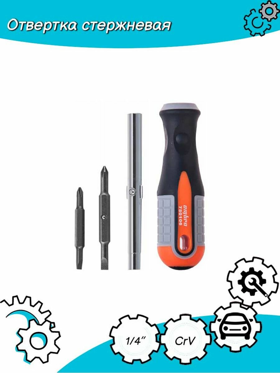 Универсальная многоцелевая двусторонняя комбинированая отвёртка, подходит для слесарно-монтажных работ (отвёртка крестовая или отвёртка шлицевая), может использоваться в качестве держателя для бит 1/4" и 5/16" или инструмента для затяжки винтовых хомутов.
