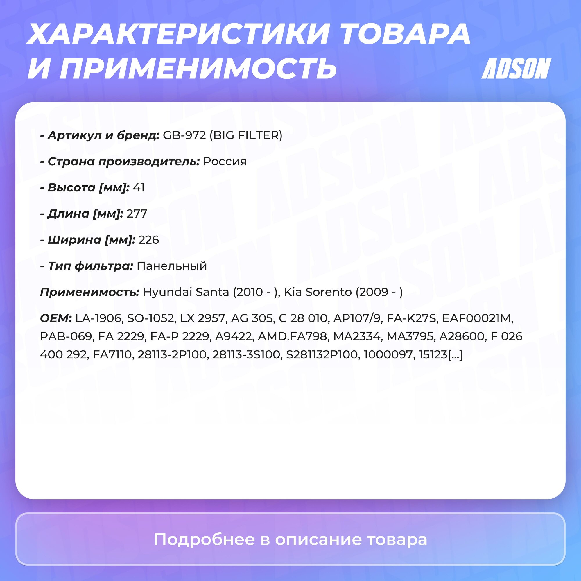 Сервис сравнения цен СкидкаГИД предлагает сравнить цены на товар «Воздушный фильтр BIG Filter GB-972»