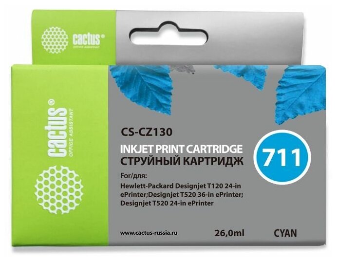 Картридж Cactus №711 для струйных принтеров HP DJ T120/T520. Расходные материалы Cactus для печати максимизируют характеристики принтера. Обеспечивают повышенную четкость изображения и плавность переходов оттенков и полутонов, позволяют отображать мельчайшие детали изображения. Обеспечивают надежное качество печати.