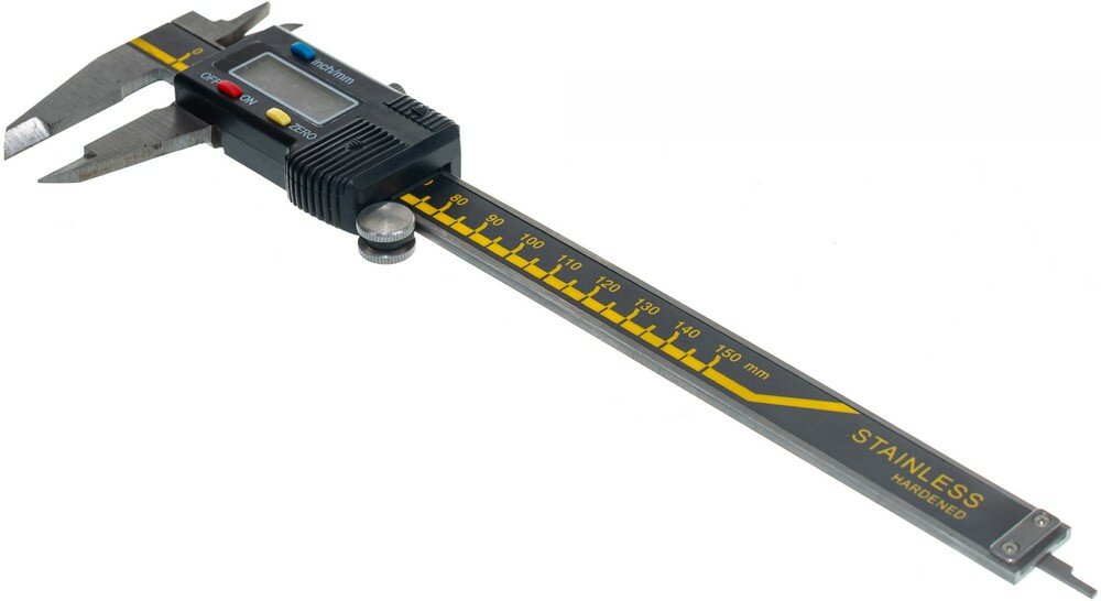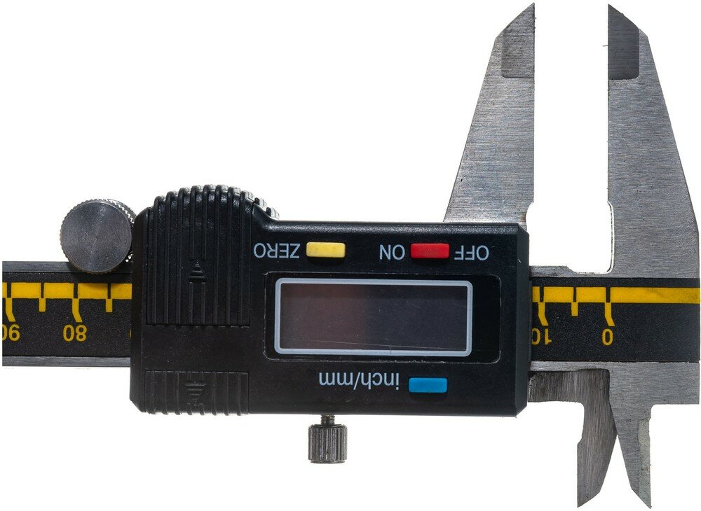Штангенциркуль электронный VOREL 150 мм / 0,01 мм, -Электронный штангенциркуль Vorel с диапазоном измерения от 0 до 150 мм и точностью (+/-) 0,03 мм.-Корпус изготовлен из пластика, остальная часть - из нержавеющей стали.-Оснащен ЖК-дисплеем с разрешением 0,01 мм / 0,005 дюйма.-С помощью размещенного на дисплее переключателя (inch/mm) можно перевести дюймы в миллиметры.-Работает от батарейки SR44.-Прибор помещен в прочный и удобный пластиковый кейс.-Необходим для определения внутренних и внешних размеров и глубины.-Важным преимуществом является функция настройки на ноль в любой точке.