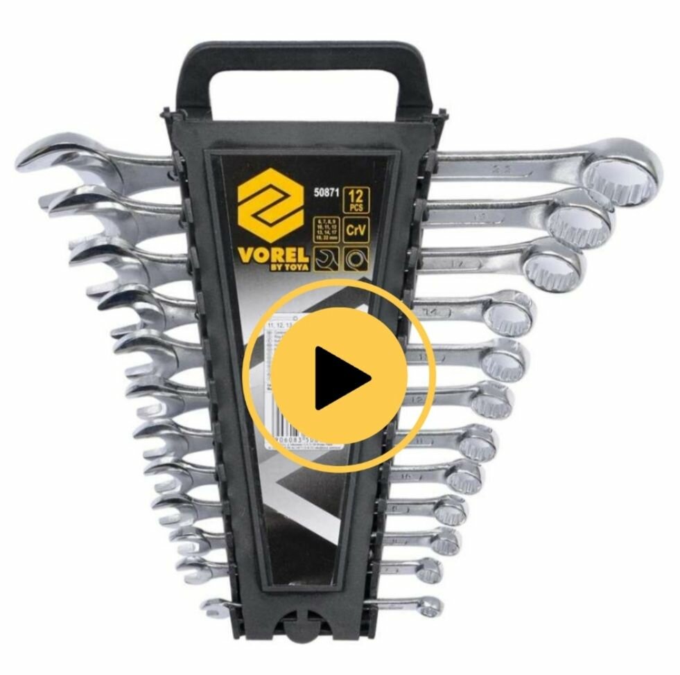 Комбинированные ключи Vorel, набор из 12 штук, 6-22 мм, CrV, Набор комбинированных ключей 12 шт. в пластиковой стойке служит для работы с резьбовыми соединениями. Набор пригодится в автомастерской, гараже, на ремонтно-строительной площадке. Комплект из 12 ручных инструментов, которые изготовлены из хром-ванадиевой стали, стойкой к большим нагрузкам. Благодаря специальному покрытию исключено образование коррозии. Каждый ключ оснащен рожковой и накидной головками. Профиль каждого ключа имеет двенадцать граней, что обеспечивает больший захват рабочей поверхности. Для удобства хранения и транспортировки предусмотрена пластиковая стойка. Размеры 6, 7, 8, 9, 10, 11, 12, 13, 14, 17, 19, 22 мм.