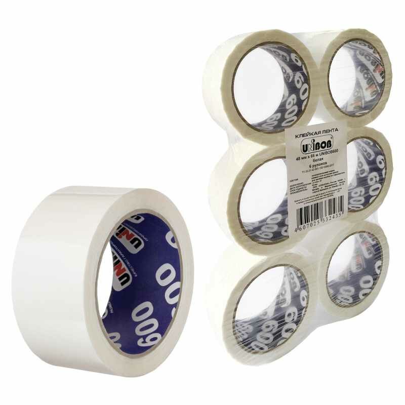 Клейкая лента упаковочная Unibob 600 белая шир.48мм дл.66м 45мкр 41150