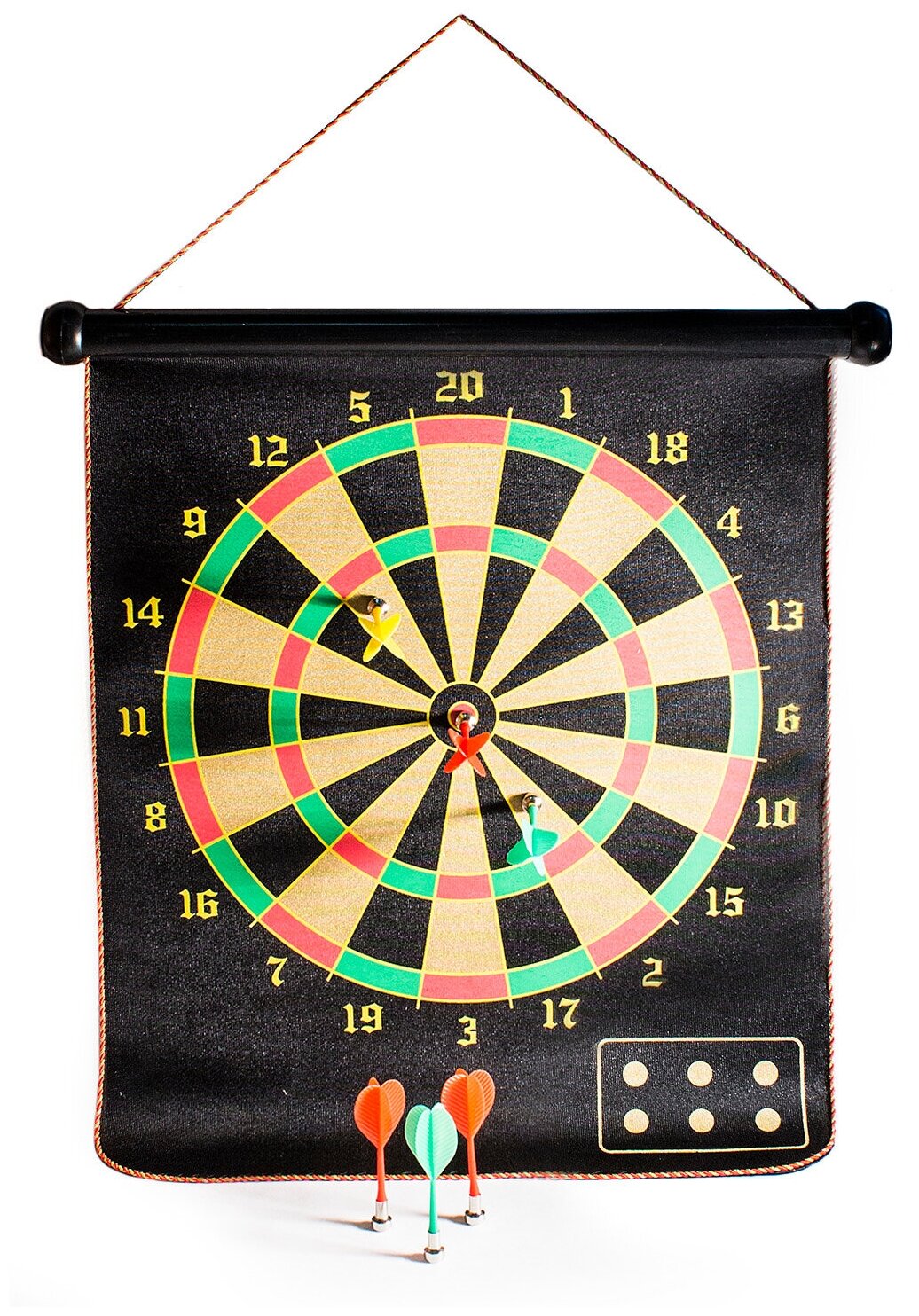 Компактный набор для игры в дартс, благодаря тонкому магнитному полю, легко сворачивается в трубочку. Такой рулончик удобно брать с собой для игр на свежем воздухе, но и для офисного перерыва или для конкурса на вечеринке он тоже подойдёт. Магнитные дротики обеспечат безопасность всем игрокам.