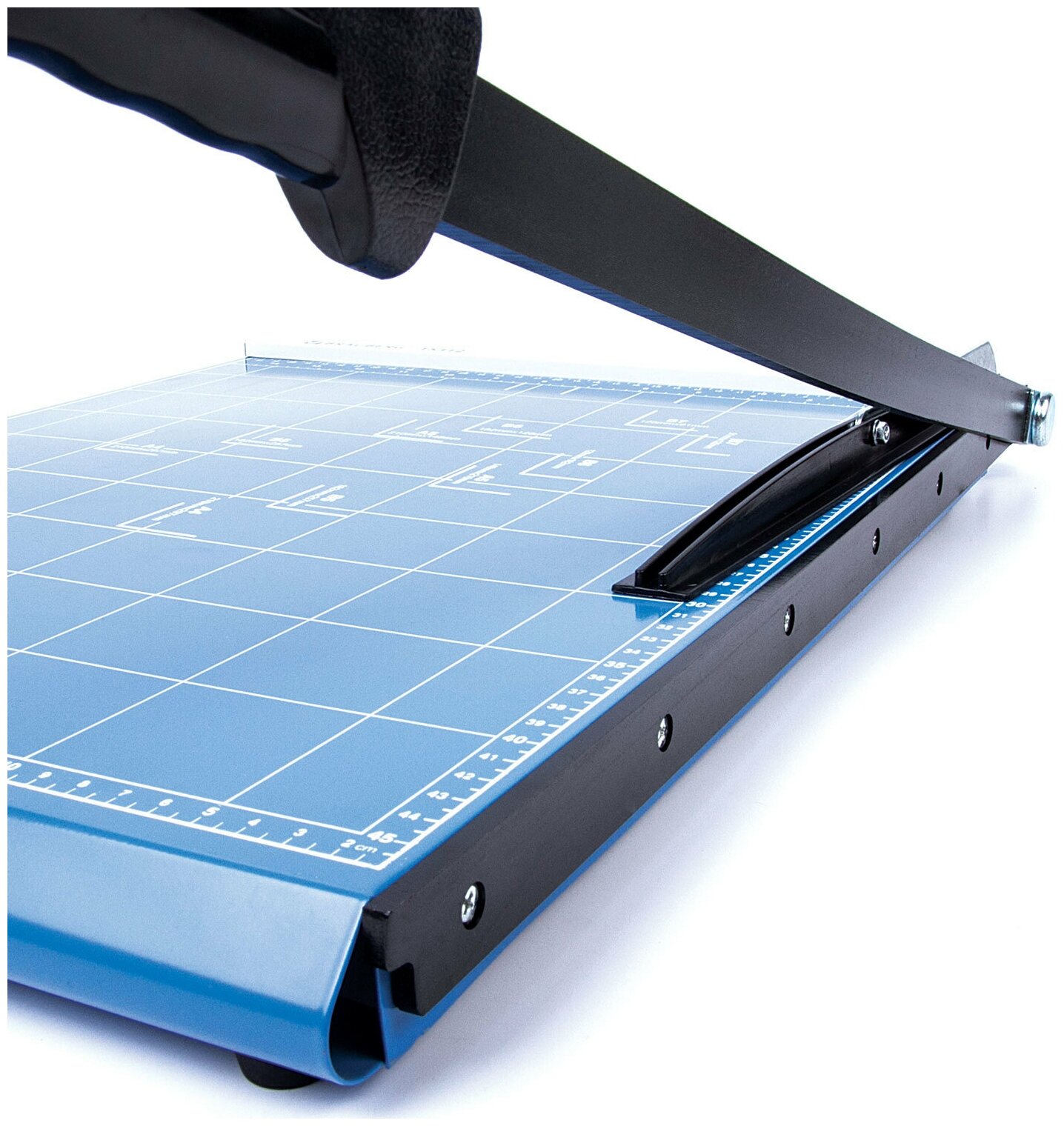 Тип: сабельный. Формат: А4 (210*297 мм). Количество листов, шт.: 15. Прижим бумаги: ручной. KW Trio Надежный и удобный аппарат, обеспечивающий идеальную резку до 15 бумажных листов за раз. Может резать не только обычную офисную бумагу, но и фотографии, заламинированные документы и даже картон. Практичный и надёжный прибор при изготовлении которого были использованы последние разработки тайваньских специалистов, позволяющие значительно увеличить эксплуатационный срок службы резака. Особенности сабельного резака KW Trio : - ограничительная планка регулируемая винтом; - мерные линии на рабочей поверхности в см/дюймах под различные форматы (A6-A4) - сабельный нож из высококачественной углеродистой стали; - ручной механический прижим; - шкала в миллиметрах и дюймах; - фиксация ножа; - металлический корпус.
