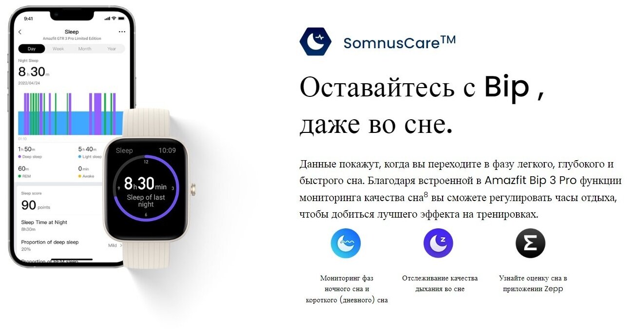 Мысли шире, мысли вместе с Amazfit Bip 3 Pro Модель оборудована цветным дисплеем размером 1.69 дюйма, со стеклом 2.5D с покрытием, защищающим от появления отпечатков пальцев. Мысли шире, мысли вместе с Amazfit Bip 3 Pro Для пользователей доступен широчайший выбор циферблатов — в приложении Zepp можно выбрать любой из 50 вариантов. В тонком и лёгком корпусе новых часов скрывается мощная батарея номинальной ёмкостью 280 мАч, которая позволяет им работать до 14 дней без подзарядки. Защищены от воздействия воды и способны выдержать погружение на глубину до 50 метров. А специальный режим смарт-часов с помощью GPS-трекера помогает отслеживать данные тренировок по плаванию. Устройство имеет 60 спортивных режимов, которые помогают пользователям отслеживать показатели при занятиях спортом, включая ходьбу, бег и езду на велосипеде на открытом воздухе и в помещениях, силовые тренировки, йогу и другие типы произвольных тренировок.Модель поддерживает функцию Target Pace, которая позволяет задавать целевые показатели, связанные с темпом ходьбы. Часы Amazfit Bip 3 Pro умеют измерять показатель насыщения крови кислородом, а результат владелец смарт-часов может получить всего за 25 секунд. Часы Amazfit Bip 3 Pro могут определять местоположение с использованием встроенного модуля навигации, способного подключаться к четырём спутниковым системам, и благодаря этому помогают пользователю отслеживать его перемещения с высокой точностью. Amazfit Bip 3 Pro позволяет отслеживать ключевые показатели состояния здоровья — сердечный ритм, уровень стресса, качество сна, менструальные циклы и другие. Также есть встроенная система оценки состояния здоровья PAI (PAI Health Assessment System). Она анализирует данные вашей физической активности, и выставляет итоговую оценку общему состоянию организма. Контролируя, чтобы значение PAI не опускалось ниже определенного уровня, пользователь часов может поддерживать свое оптимальное физическое состояние.