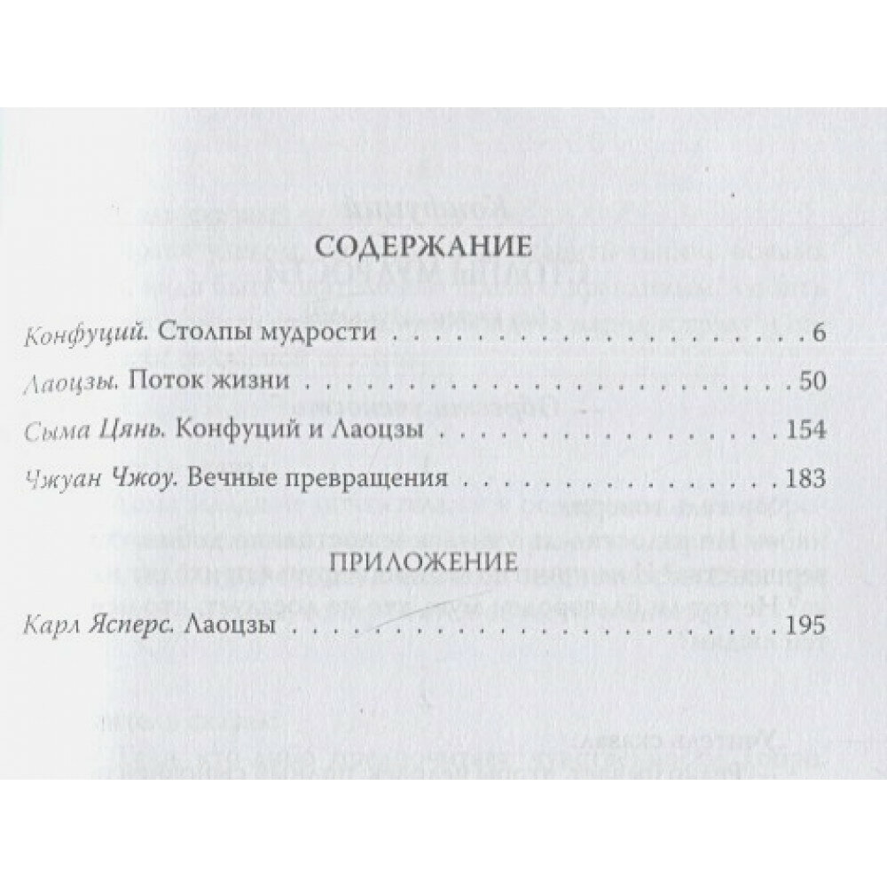 Конфуций и Лаоцзы – два самых известных китайских философа. Они были современниками, жили в VI - V веках до н. э., но их философские воззрения сильно отличались. Конфуций большое значение придавал жизненным правилам, «столпам мудрости» – особому ритуалу поведения в обществе. Школа Конфуция со временем достигла статуса государственной идеологии. Основным понятием в философии Лаоцзы было «Дао», которое условно можно передать как «поток жизни», «великий путь» – это всепронизывающая сила, одновременно и средство, и цель существования. По мнению Лаоцзы, наличие в обществе жестких нормативных этических систем — например, конфуцианства — свидетельствует о том, что в нём есть проблемы, которые такая система только усиливает, будучи не в силах их разрешить. В книге представлены основные работы Конфуция и Лаоцзы, дающие представление о взглядах двух выдающихся философов