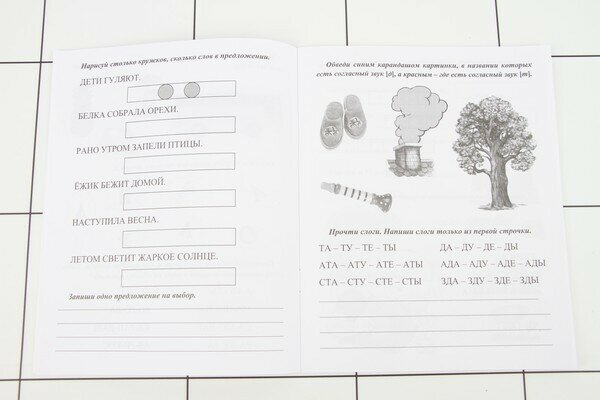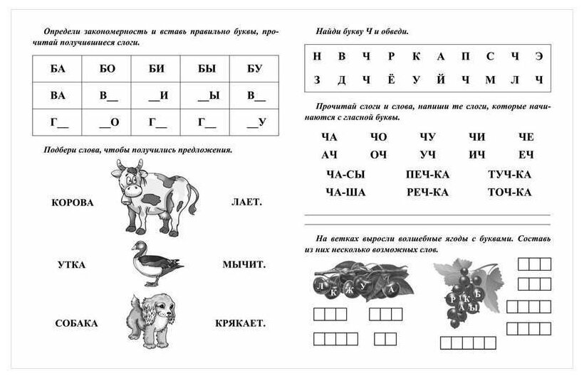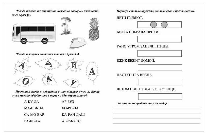 Данная книжка - это сборник заданий, а не прописи, как заявлено в названии. Задания достаточно разнообразные, интересные и эффективные для подготовки к школе. Картинки все черно-белые, листы достаточно тонкие - писать только простым карандашом или шариковой ручкой. Такую книжку удобно взять с собой летом на дачу и повторить с ребенком перед школой буквы, состав слов и предложений.