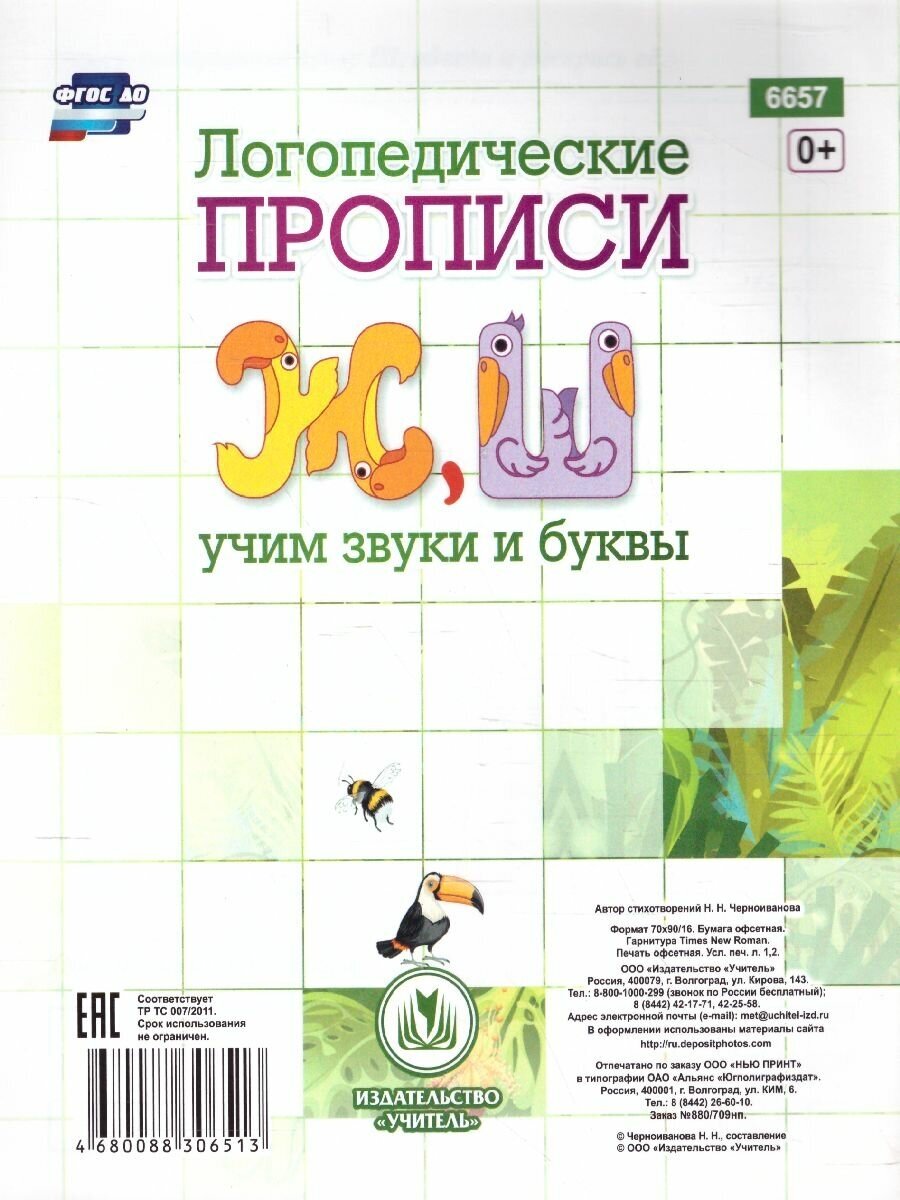 Сервис сравнения цен СкидкаГИД предлагает сравнить цены на товар «Книга: Логопедические прописи. Ж Ш. Учим звуки и буквы: для детей 4-6 лет (Черноиванова Наталья Николаевна); Учитель, 2021»