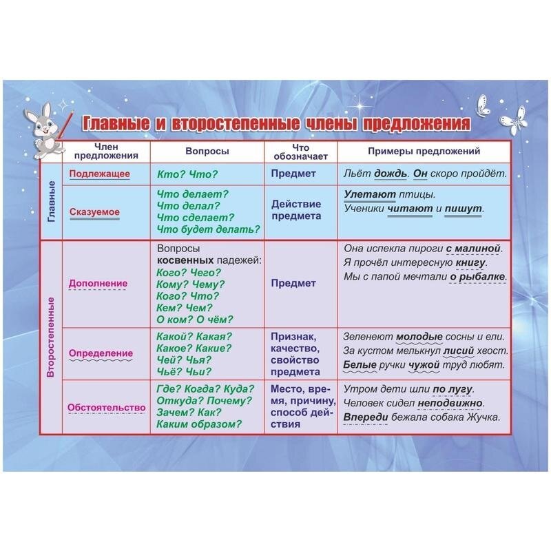 Учебный плакат "Главные и второстепенные члены предложения" А5 (Плакат); Учитель, 2021