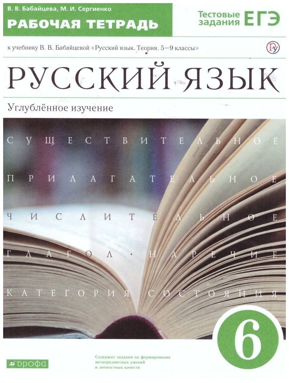 Русский язык. 6 класс. Углубленное изучение. Рабочая тетрадь к учебнику В.В. Бабайцевой "Русский язык. Теория. 5-9 классы". Тестовые задания ЕГЭ. (Марина Игоревна Сергиенко, Вера Васильевна Бабайцева); Дрофа/Просвещение, 2023