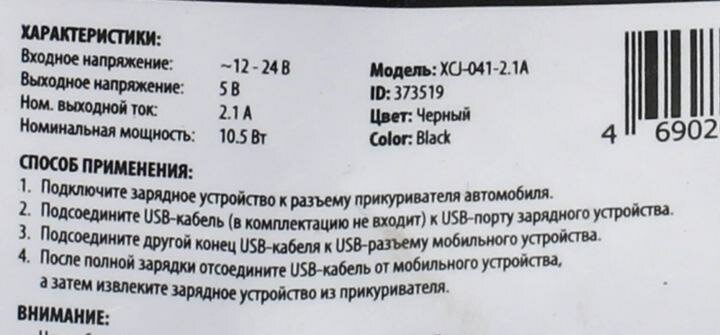 | Комплект поставки | Автомобильное зарядное устройство, документация |