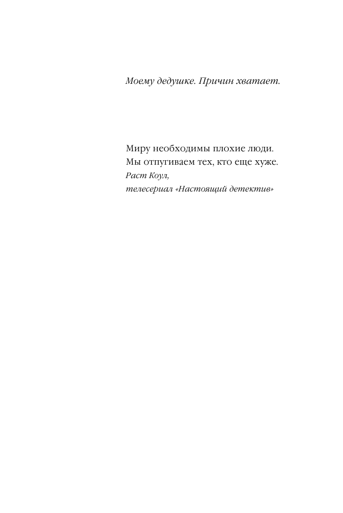Маленькая и глупая деталь, которую я считаю важной потому, что куча текста тут вместо расследования повествует о прошлых и настоящих постраданиях главгероя, в том числе о его лл с новой начальницей. Начальница замужем, и обожемой какое невероятное совпадение, как и все в этом идеально выстроенном детективе – замужем она за убийцей, который сам станет жмуром по итогу расследования, вот и всё, ничего больше не мешает гг и начальнице любиться, соперник устранен самым непричастным к любовной линии образом, ай как здорово, нормально, Григорий, отлично, Константин.