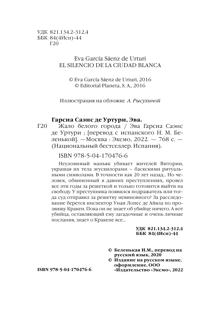 Книга: Жало белого города (Саэнс де Уртури Эва Гарсиа); ООО "Издательство "Эксмо", 2022
