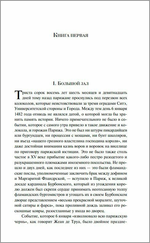 за свою цену – идеальный вариант. Что касается содержания, то это образцовый исторический роман на грани романтизма и реализма, дающий ясное представление о поэтике Виктора Гюго, включающей интерес к различным историческим эпохам в соотнесении с его современностью, неординарных и мощных персонажей, переживающих сильнейшие порывы страстей, изложение авторского философского взгляда на тот или иной элемент истории / культуры / структуры общества / etc. и ряд других элементов. Для первого знакомства с творчеством Гюго "Собор Парижской Богоматери" – отличный выбор :) -