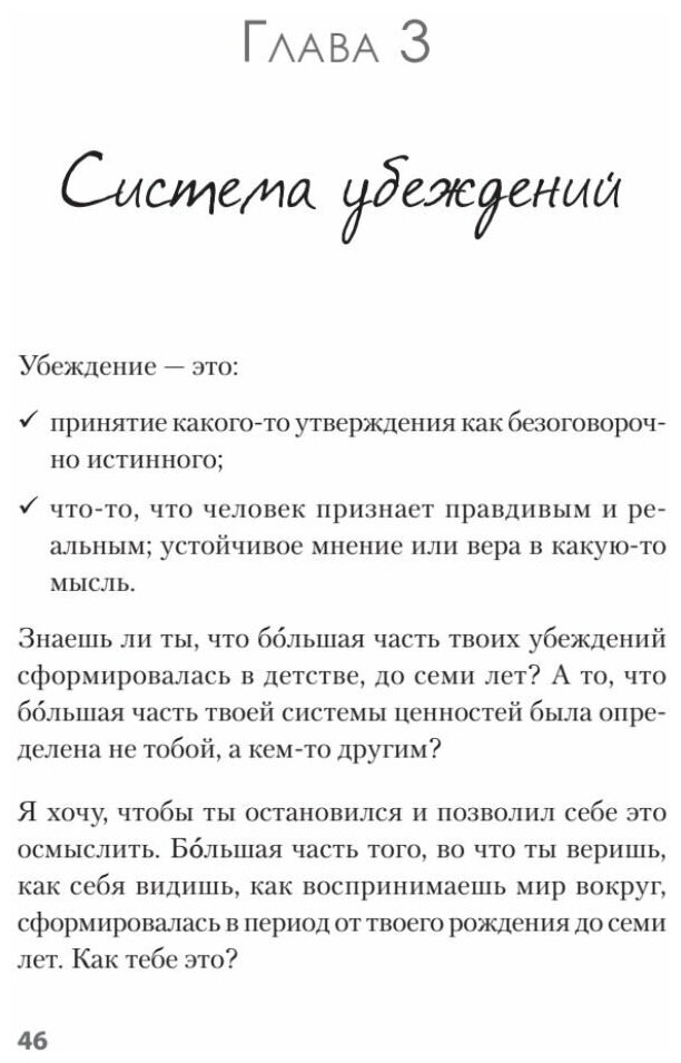 Подростковый возраст - один из первых серьезных осознанных кризисов. "Бунтующие подростки" - естественный этап взросления и становление личности. Как и любой кризис, этот возраст сопровождается изменениями и ростом, но для роста нужно сначала пройти упадок. Эта книга создана для понимания и контроля собственного состояния вместе с экспертом. Не стоит сразу ставить крест на книге, если вы уже не общепринятого подросткового возраста, некоторые люди остаются подростками навсегда. А для человека, который хочет стать осознанным и начать контролировать ситуацию, эта книга точно не будет лишней. Автор рассказывает о таких, знакомых многим, ситуациях, когда наши собственные мысли становятся нашим мучением, мы додумываем, придумываем, закапываемся в них, теряем контроль, поверьте, все когда либо ощущали это. О том, как это происходит, точнее как в этом заключается работа нашего мозга и подсознания, и рассказывает книга. Цель автора - дать читателю инструменты для самоконтроля, избавиться от синдрома самозванца, от вечной оценки, от иррациональных убеждений. В книге есть пустые страницы, которые должны занять ваши собственные ощущения и мысли, проговорить и зафиксировать на бумаге - важный шаг в работе над собой. Все это позволяет стать осознанным в своих эмоциях, не дает тревоге путать ваши мысли и ощущение окружающего мира.