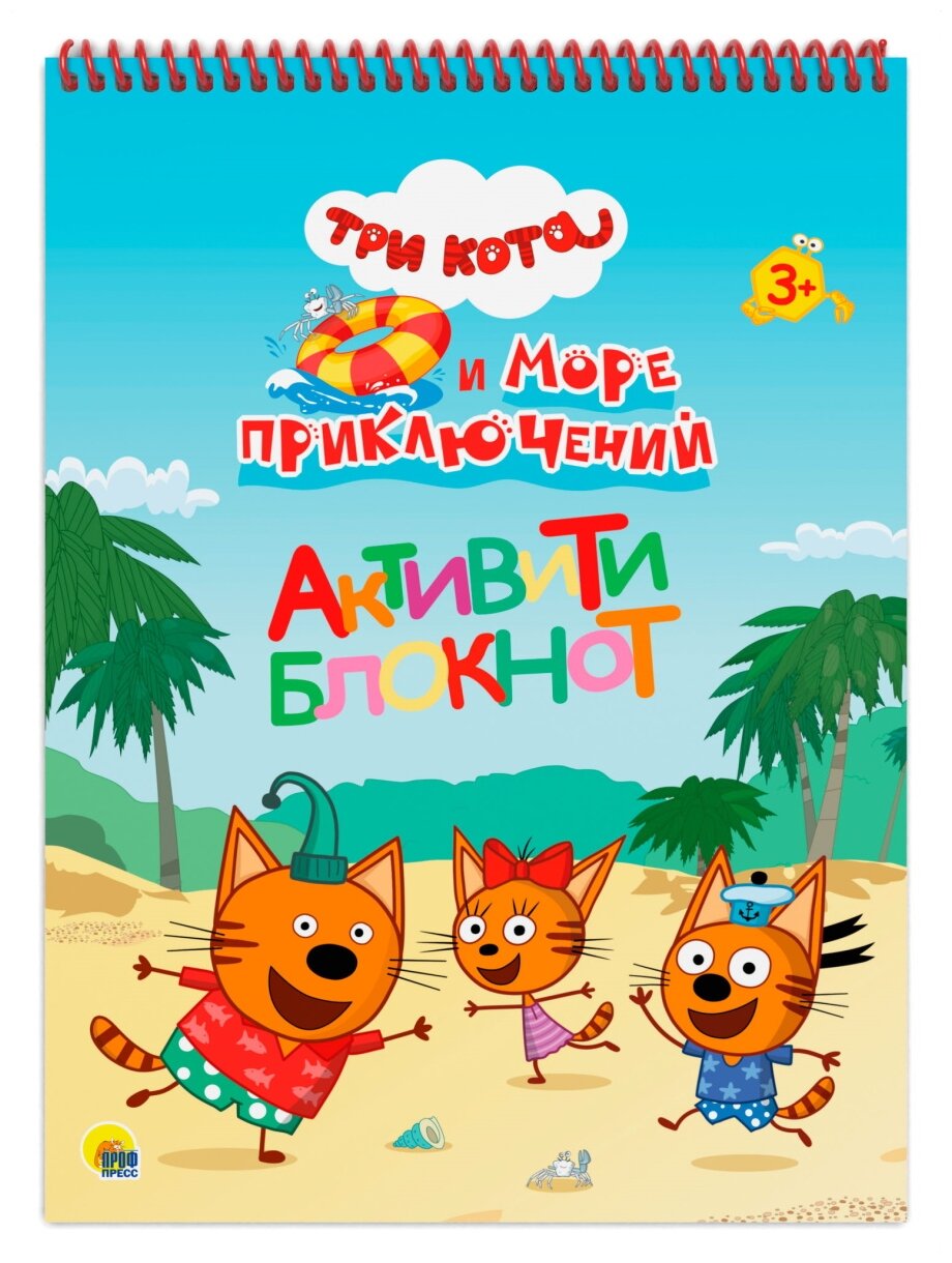 Активити-бокнот по мотивам полнометражного мультфильма "Три кота и море приключений" содержит интересные развивающие задания и раскраски. Цветные иллюстрации с любимыми героями и весёлые игры обязательно понравятся ребёнку. Плотная картонная подложка и крепление в виде спирали позволяют рисовать и решать головоломки на прогулке или в путешествии.