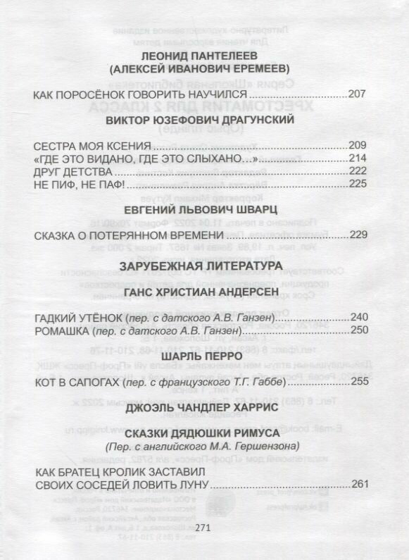 Книга: Хрестоматия для 2 класса (Пришвин Михаил Михайлович; Платонов Андрей Платонович; Житков Борис Степанович; Жуковский Василий Андреевич; Куприн Александр Иванович; Гаршин Всеволод Михайлович; Пантелеев Леонид; Драгунский Виктор Юзефович; Шварц Евгений Львович; Андерсен Ганс Христиан; Перро Шарль; Харрис Джоэль Чандлер); ИД ПРОФ-ПРЕСС, 2022
