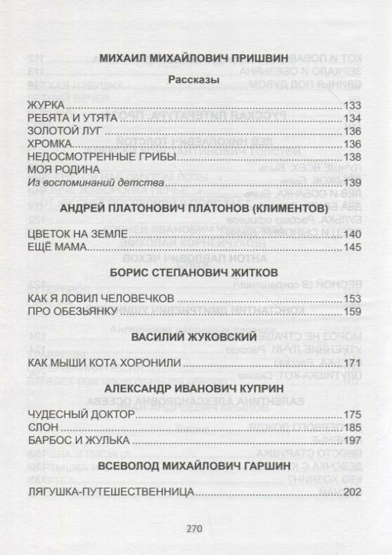 | Автор(ы) | Пришвин Михаил Михайлович; Платонов Андрей Платонович; Житков Борис Степанович; Жуковский Василий Андреевич; Куприн Александр Иванович; Гаршин Всеволод Михайлович; Пантелеев Леонид; Драгунский Виктор Юзефович; Шварц Евгений Львович; Андерсен Ганс Христиан; Перро Шарль; Харрис Джоэль Чандлер |
