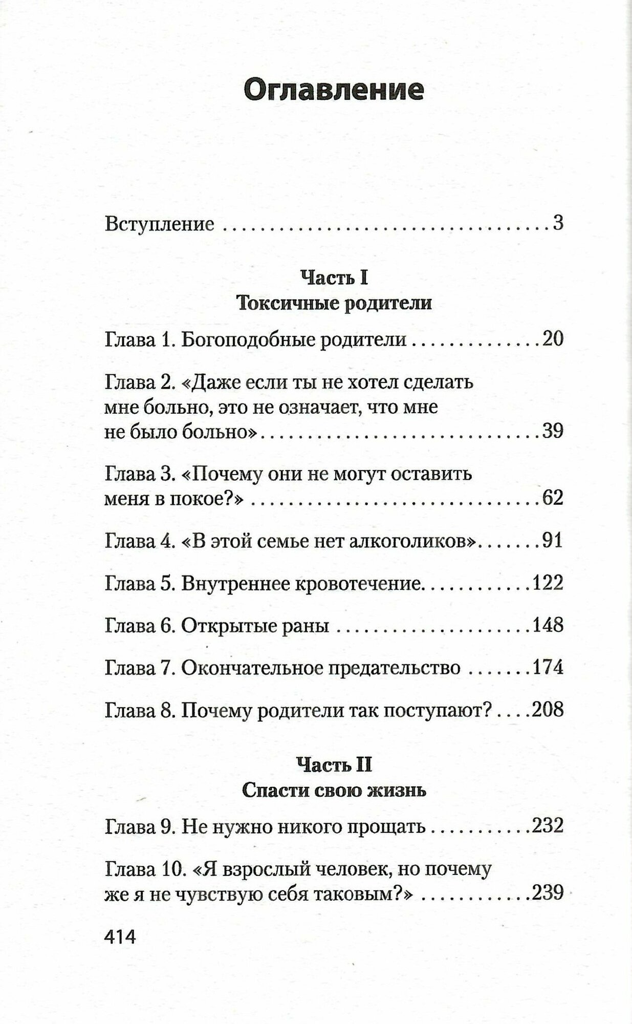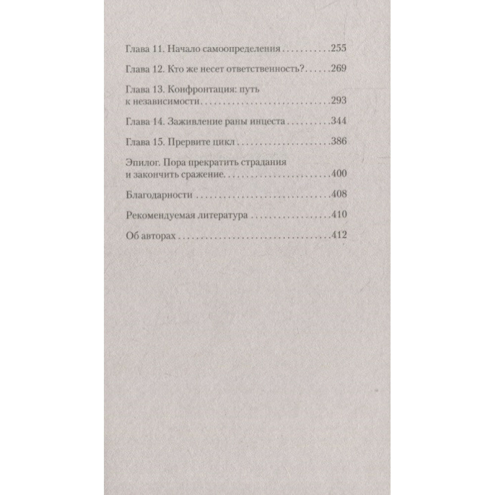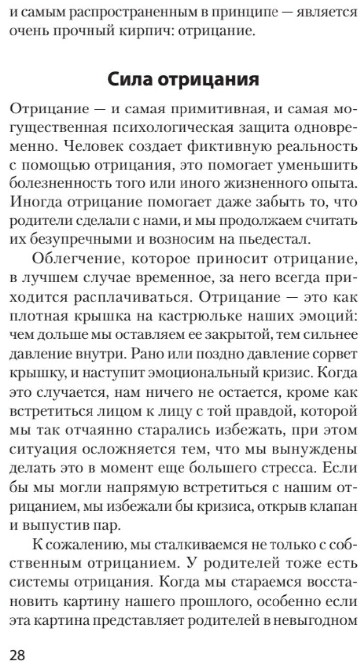 Все (или почти все) родители время от времени не оправдывают наших ожиданий. Однако Сьюзан Форвард не смягчает ударов, когда речь заходит о людях, чьи недостатки наносят тяжелую психологическую травму детям. Ее живая, откровенная книга помогает свести на нет родительские манипуляции авторитетом, чувством вины и прочими «убийцами» чувства собственного достоинства. Эта книга для всех, кто хочет справиться с болью детства, а главное, идти дальше, выйти за рамки паттернов разочаровывающих взаимоотношений, укоренившихся в родительском доме. Не надо винить себя за то, что было с вами в прошлом. Вы можете изменить свою жизнь прямо сейчас! Достаточно прочесть эту книгу, и вам откроется совершенно новый мир — мир уверенности в себе, эмоциональной независимости и большой внутренней силы.