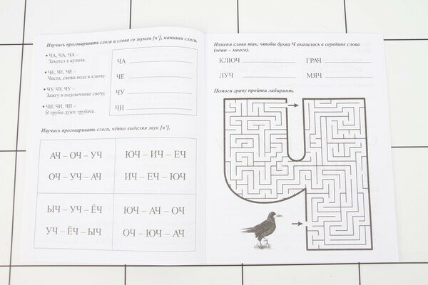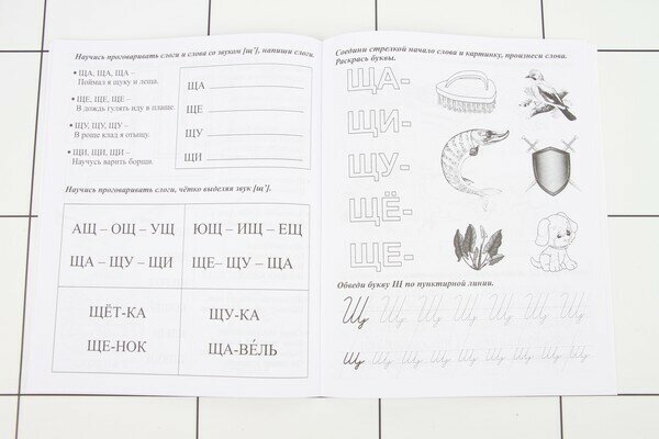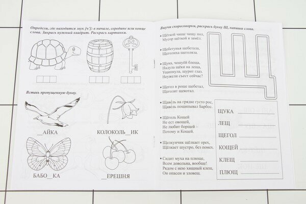 Не знаю действительно ли помогает чисто говорить простое чтение слогов. Если так, то это круто. Так, прописи обычные. Большинство заданий на прописывание, но есть и оригинальные головоломки, которые малышу придутся по душе. Все задания примерно одинаковой сложности, средней, не слишком долгие и за 2 минуты не раскрываются. Печать четкая, рисунки симпатичные, есть что рассмотреть.
