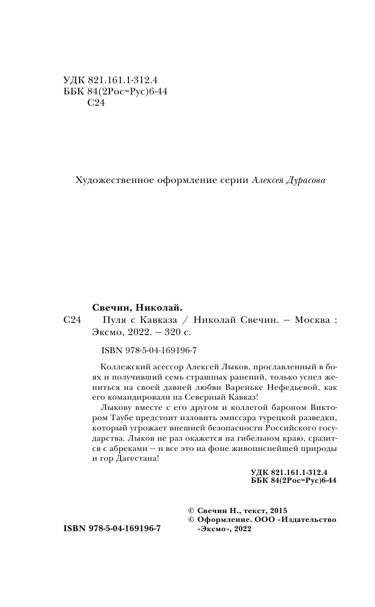 Книга: Пуля с Кавказа (Свечин Николай); Эксмо, Редакция 1, 2022