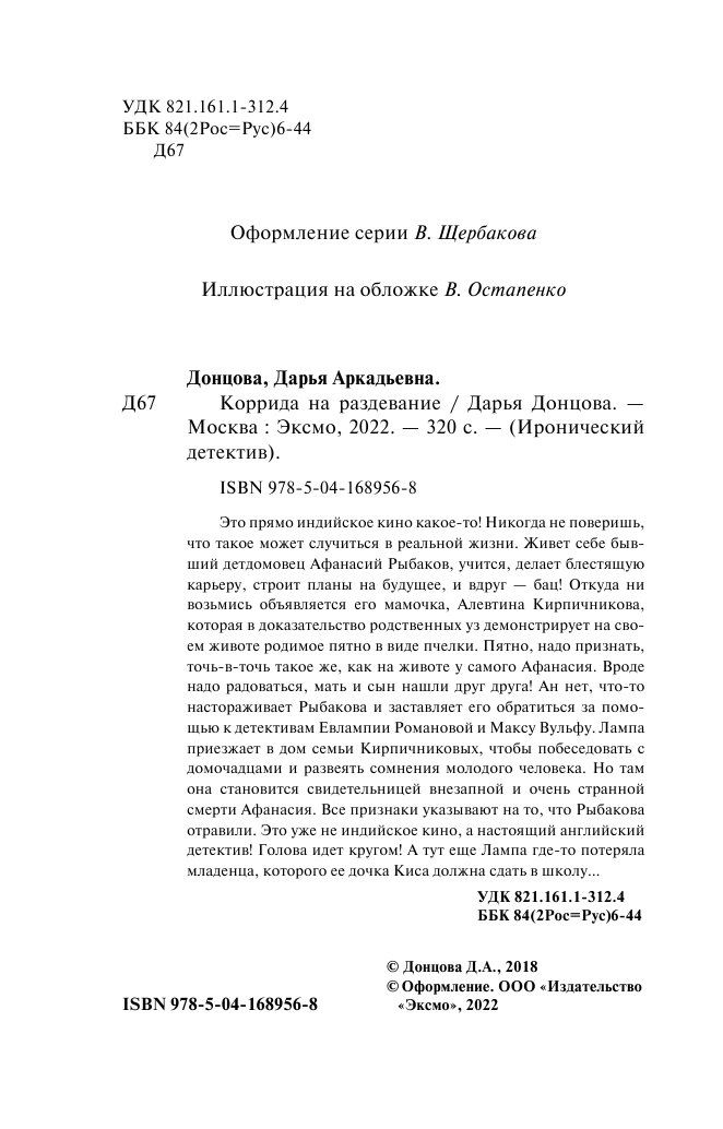 Книга: Коррида на раздевание (Донцова Дарья Аркадьевна); ООО "Издательство "Эксмо", 2022