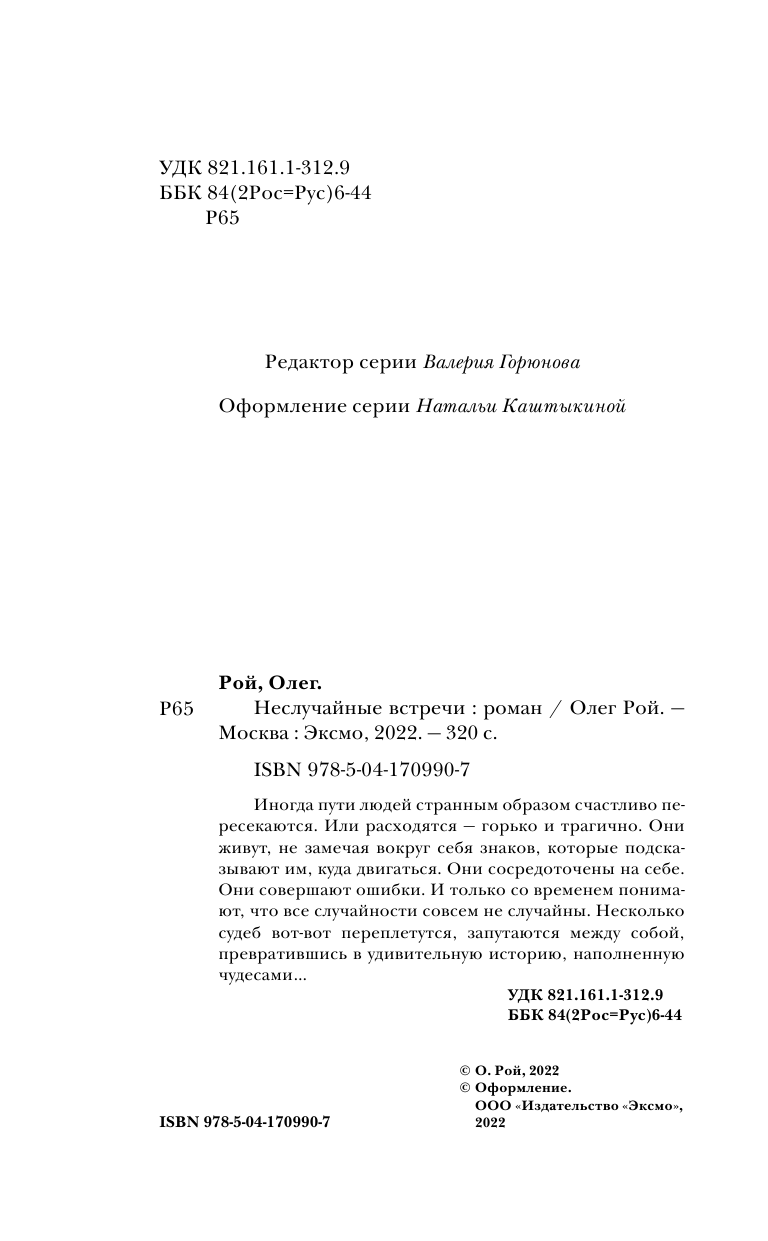 Книга: Неслучайные встречи (Рой Олег Юрьевич); Эксмо, Редакция 1, 2022