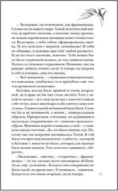 Новый роман Олега Роя, и это чувствуется – действие происходит в Москве в наши дни, одна из героинь – блогер и коуч по отношениям, а главная героиня ездит на модной красной тачке :). Несмотря на ультра современность, тем не менее, тема романа все-таки вечная – успешная женщина в поисках любви, выбирая между двумя кавалерами. Один предстает захватывающим, но ненадежным, второй – скучным, но надежным. Кто из них останется для нее родным и близким? Есть в этом некая деконструкция сказки – в жизни мы все-таки не хотим жить в приключении, мы хотим жить в безопасности, но не всегда отдаем себе об этом отчет. Что особенно понравилось – романтикой текст не ограничивается, как порой пишут в любовной прозе – как будто у героини нет жизни помимо любовного интереса :). Здесь будет и про дружбу, и про сложные отношения с семьей, и даже про работу. В общем, это не только про любовь – но, скорее, про жизнь. Однозначно рекомендую читательницам мудрее и старше, думаю, они по достоинству оценят глубину произведения.