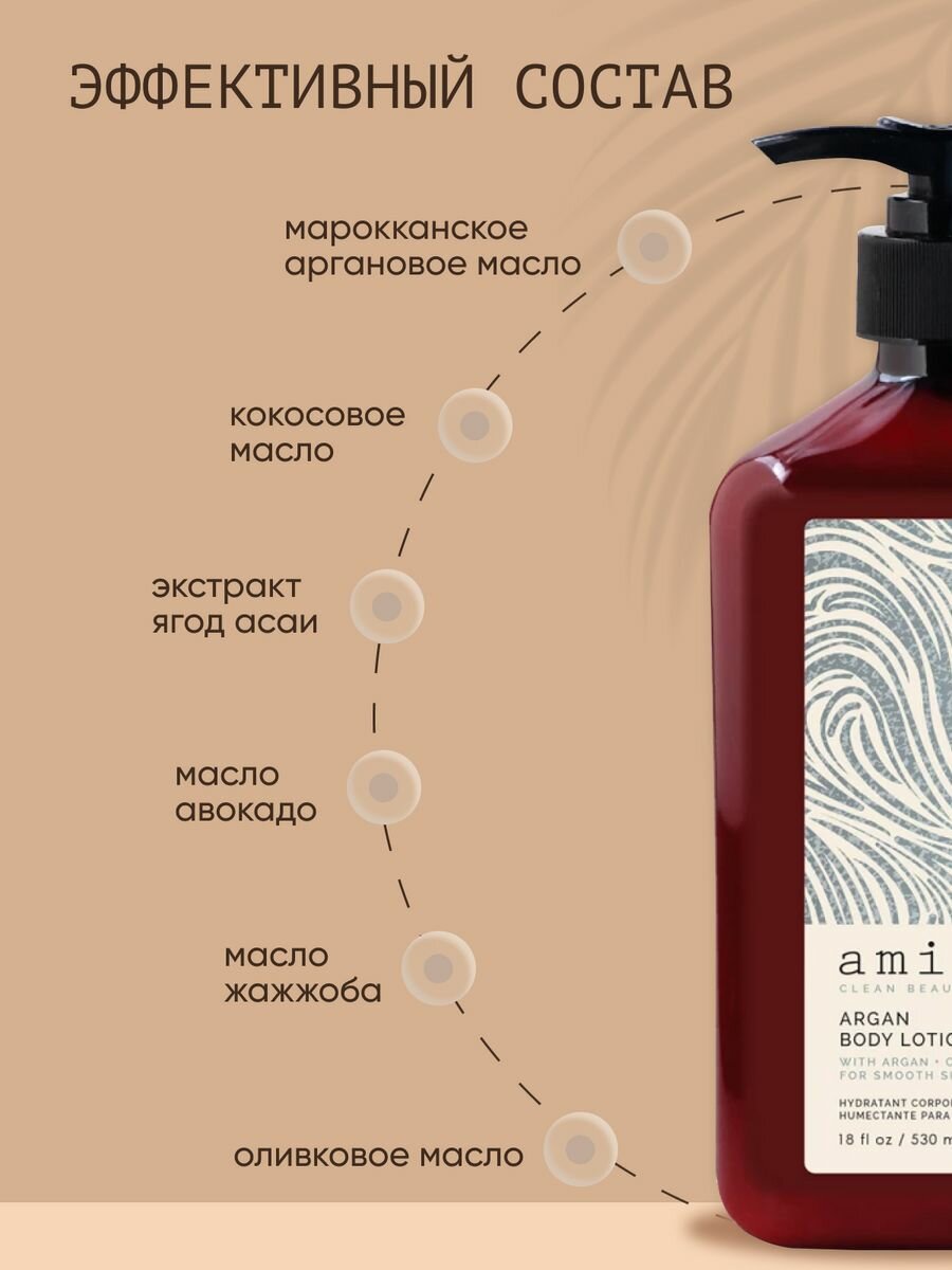 | Полное наименование | Лосьон для тела Amir Clean Beauty увлажняющий, Argan, 530 мл |