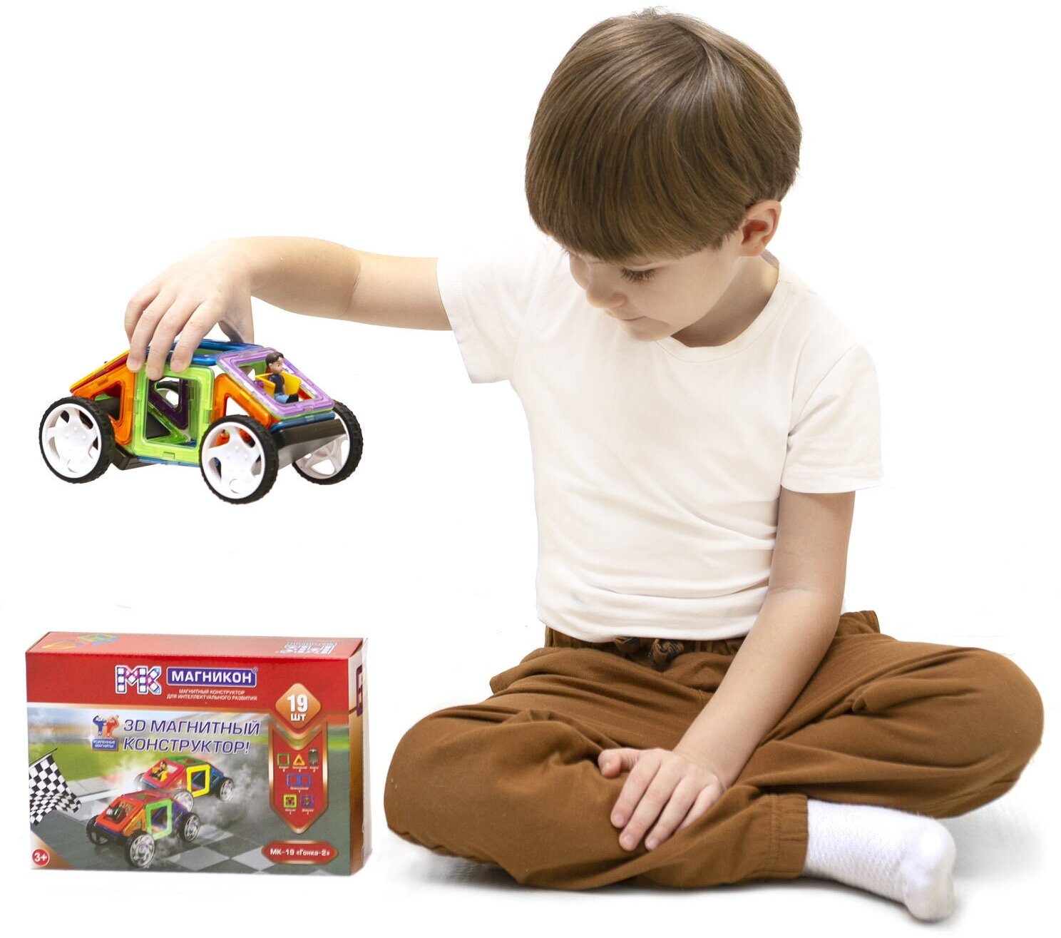 Конструктор магнитный Магникон Гонка-2 19 деталей с усиленными магнитами