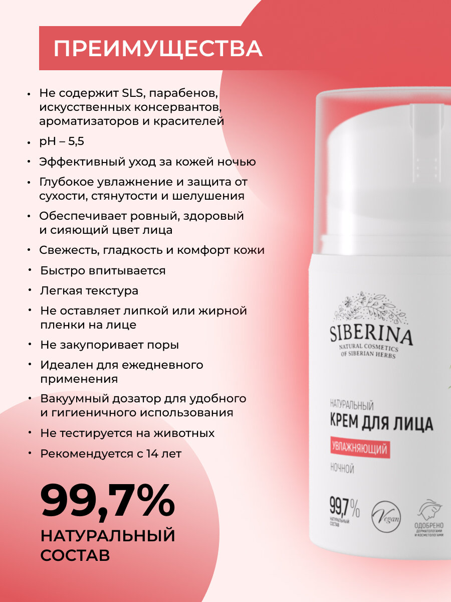 Siberina Ночной крем для лица "Увлажняющий" 50 мл (Siberina ) (ЭХ99989430674)