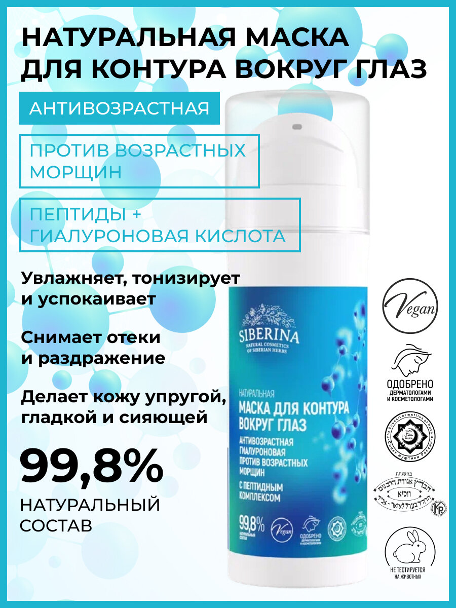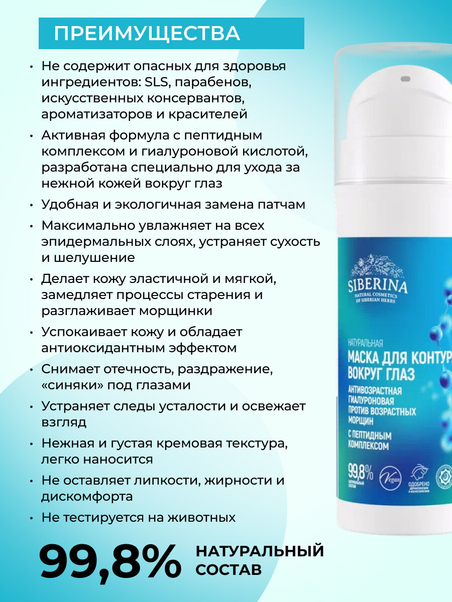 Siberina Антивозрастная гиалуроновая маска для контура вокруг глаз с пептидным комплексом против возрастных морщин 30 мл (Siberina ) (ЭХ99989430684)