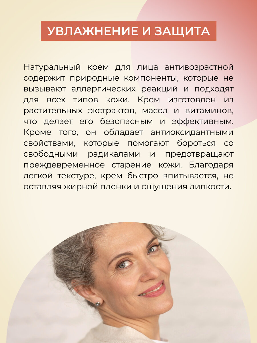 Для достижения максимального эффекта рекомендуем использовать в сочетании с кремом для лица "Антивозрастной" ночной.